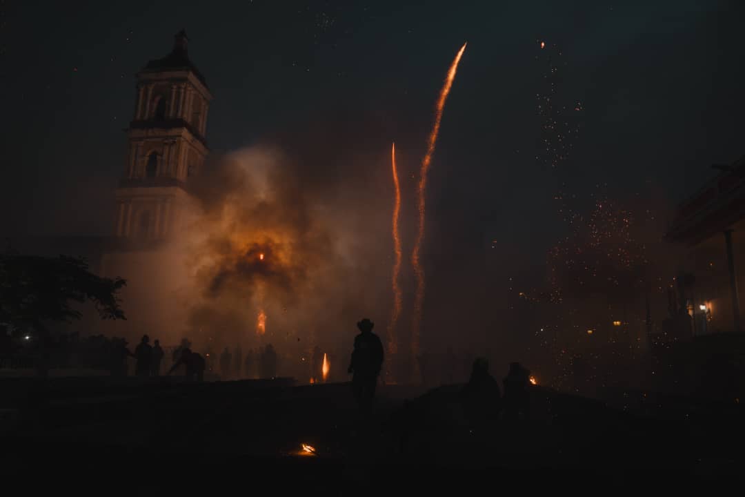 A partir de las nueve de la noche, El Carmen y San Salvador retoman el enfrentamiento. La oscuridad se rinde ante el encendido de los trabajos de plaza. El cielo estalla una y otra vez con fuegos cada vez más vistosos y coloridos; mientras, la multitud se mueve sin descanso, de un lado a otro, de un barrio a otro. No hay tregua, solo alternancia.