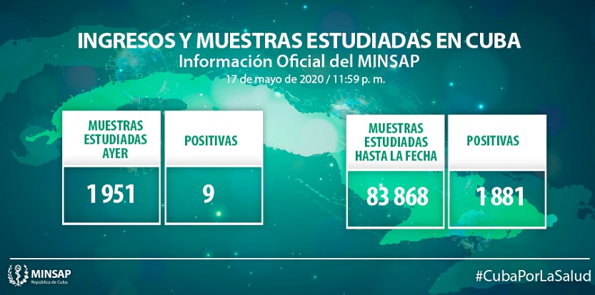 Al cierre del día de ayer, 17 de mayo, se encuentran ingresados en hospitales para vigilancia clínico epidemiológica 970 pacientes. Otras 2 mil 293 personas se vigilan en sus hogares, desde la Atención Primaria de Salud.