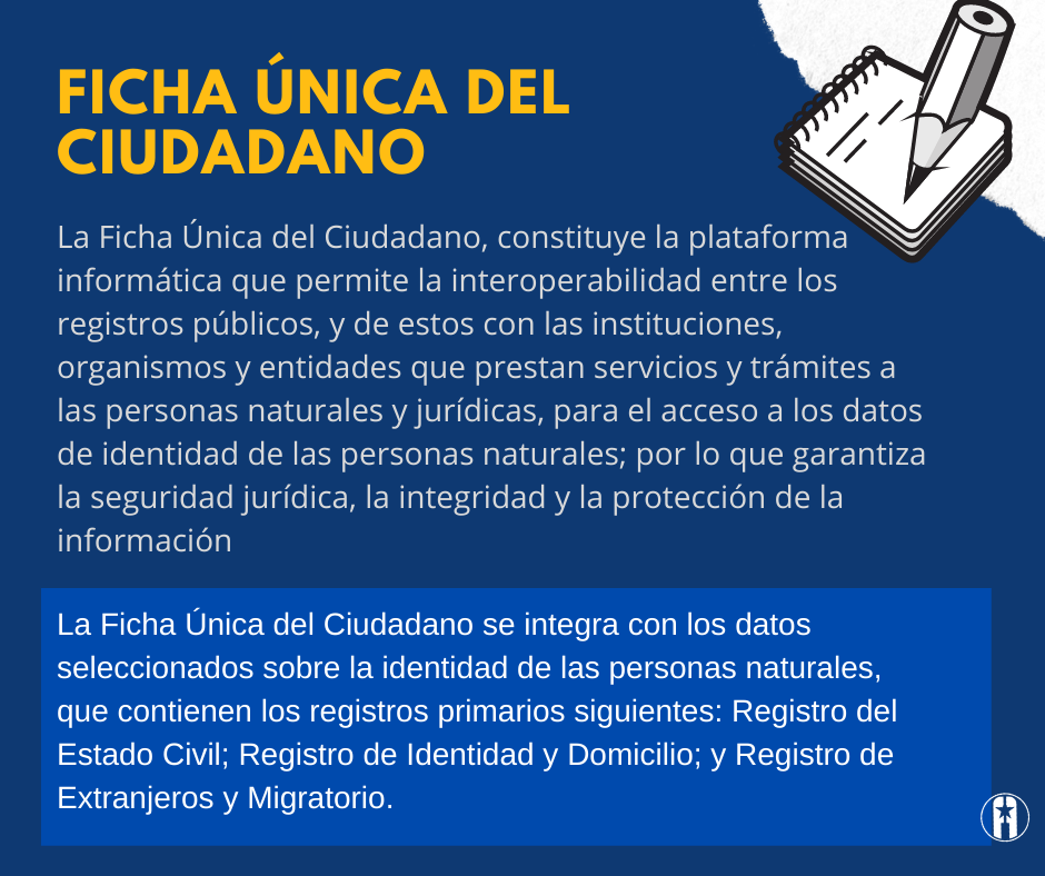 Para ello la ficha Única del Ciudadano cobra gran importancia. Esta permitirá el acceso a unidades jurídicas a información de los ciudadanos mediante una solo vía, lo que agilizará proceso, además de constatar y unificar datos en un solo lugar.
