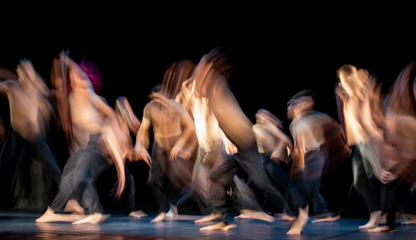 Los cuerpos miran hacia el “cielo” del escenario. Están formados, en una fila. Una fila en movimiento en la que el primer bailarín viaja por encima de sus colegas hasta llegar al final: una rotación infinita de desventuras, en la que cada uno aporta su marca individual de pesar, y en la que todos, en un bucle infinito, coinciden en los puntos cardinales del desarraigo.
