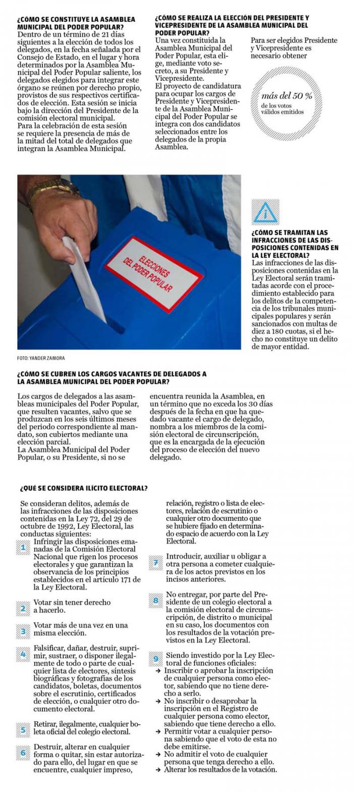 De una manera más gráfica para facilitar su comprensión, Granma ofrecerá a sus lectores, todos los jueves y por varias semanas, algunos detalles y precisiones sobre el proceso electoral, cuya convocatoria fue librada por el Consejo de Estado el pasado 14 de junio. Para este empeño nos hemos apoyado básicamente en la Ley No. 72, Ley Electoral, del 29 de octubre de 1992. También contamos con los especialistas de la Comisión Electoral Nacional (CEN)