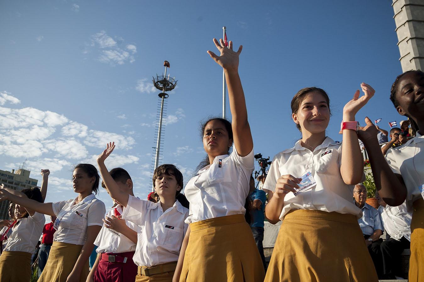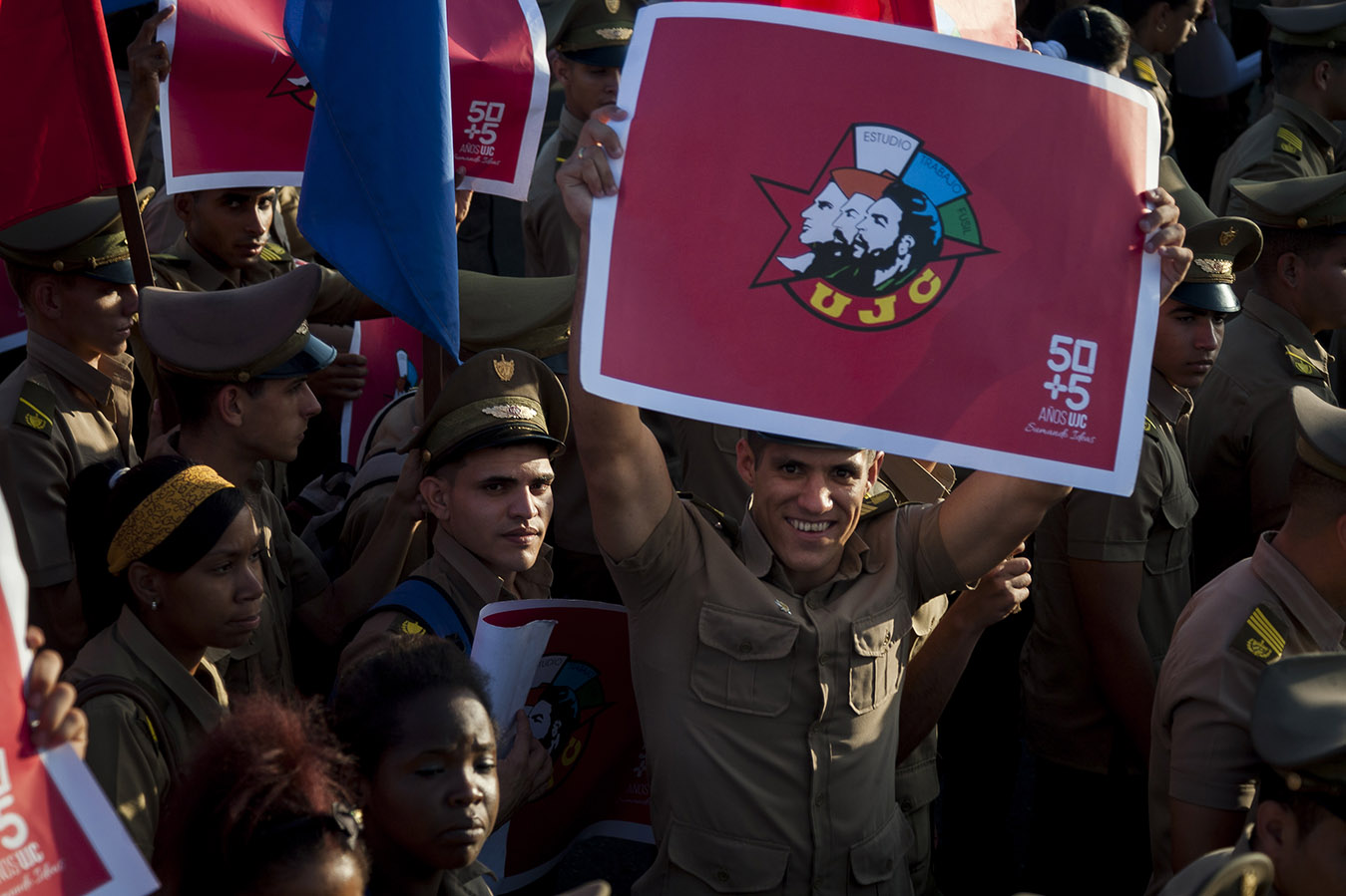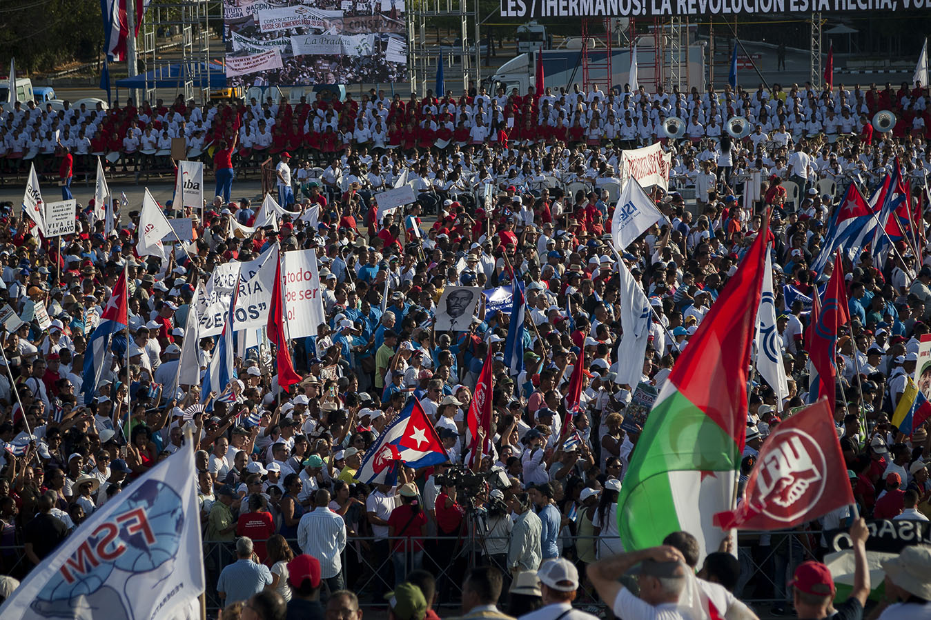 Cincuenta mil jóvenes cubanos abrieron la multitudinaria marcha que este 1 de Mayo desbordó la Plaza de la Revolución para celebrar el Día Internacional de los Trabajadores.