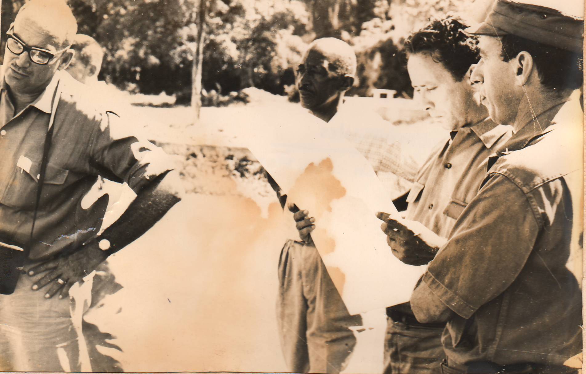 Los primeros recorridos para planificar la construcción del Jardín Botánico Nacional. José Ramón Machado Ventura a la derecha de la foto (Foto: Cortesía del Autor)
