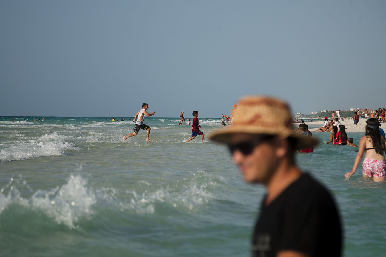Un grupo de jóvenes juega voleibol, una niña salta mientras otra casi cae de su pequeño salvavidas, casas de campaña para protegerse del sol: las escenas en la playa son infinitas, y si se fotografían desde el agua todavía más.