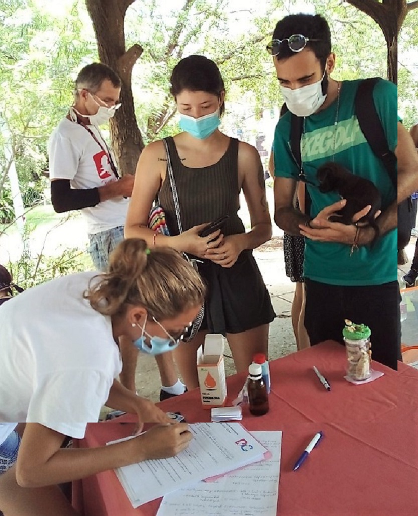 Los voluntarios toman los datos de los adoptantes. (Maya Quiroga/Cubahora)