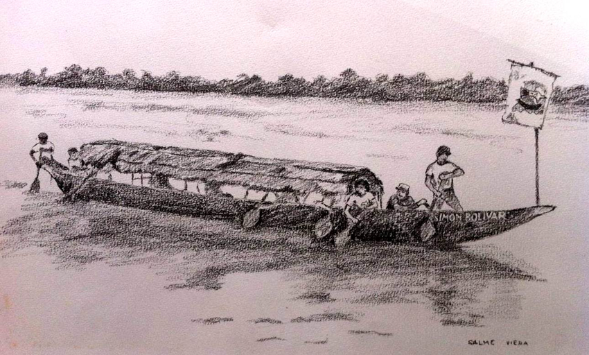 Dibujo de la canoa "Simón Bolivar" realizado por el pintor y expedicionario Fernando Salme. (Foto. Cortesía del Autor).