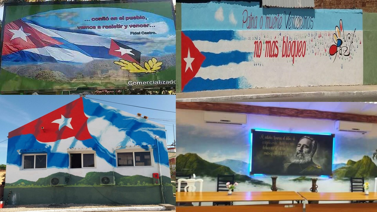 Murales que engalanarán el teatro, la entrada y la sala de conferencias del IPVCE Carlos Marx (Imagen / Jessica Mesa)