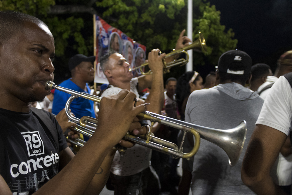 Trompetas, tumbadoras y cornetas formaban la banda sonora del defile. Foto: Laura Alonso Hernández
