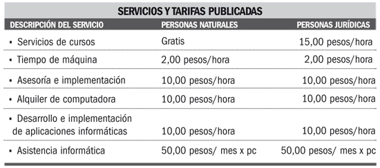 Vale destacar que en cuanto a los precios, tanto las personas naturales como las jurídicas deberán saldar el mismo monto. El único servicio que se mantiene de forma gratuita es el de los cursos que se ofrezcan para las personas naturales. En el caso de las jurídicas, deben abonar 15 CUP por hora.
