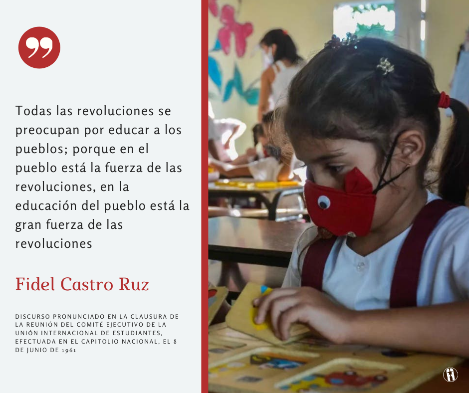 Allí en el campo, la escuela, el consultorio del médico de familia, el estadio deportivo, el laboratorio científico; está  Fidel, su legado y lo que se ha realizado para hacer de Cuba una nación culta y soberana, donde no existe analfabetismo, se disfruta seguridad en las calles y los niños son los primeros en el mundo en comenzar las clases inmunizados contra la COVID-19.