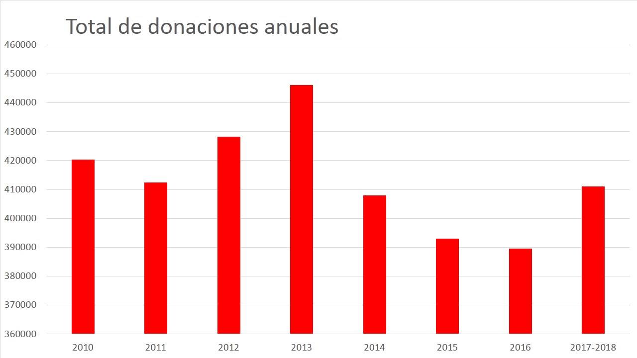 Según Luis Enrique Pérez Ulloa, jefe del Programa Nacional de Sangre, al concluir el año 2017 e inicios de 2018, se habían realizado unas 411 000 donaciones en el país, para una tasa de 36,5 por cada mil habitantes. Estas cifras significaron la estabilidad por encima de las 400 000 donaciones desde 2016, pues anteriormente había ocurrido un descenso gradual desde 2014.