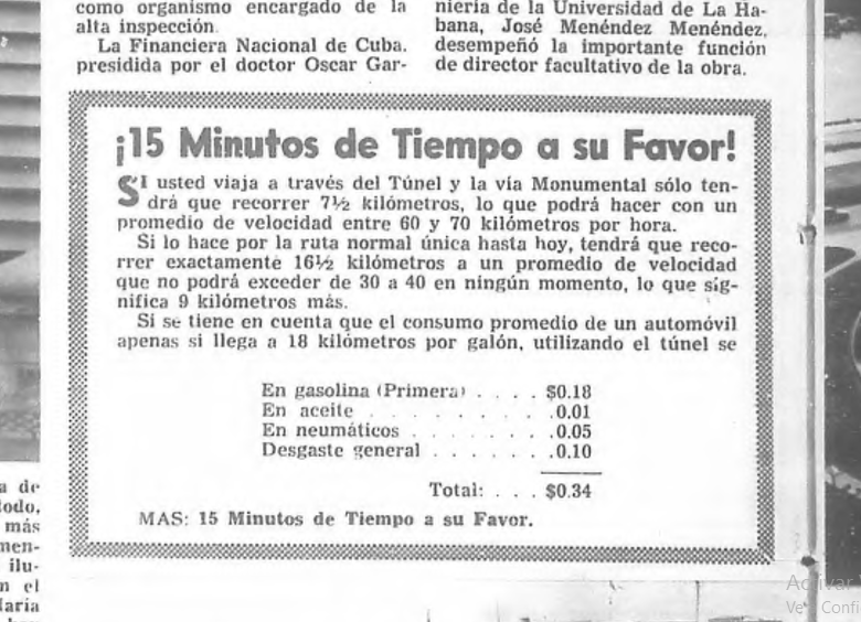Anuncio comercial del Túnel de la Bahía en los medios impresos de la época. Foto tomada: de la Revista Bohemia de junio de 1958 (Foto: Revista Bohemia)
