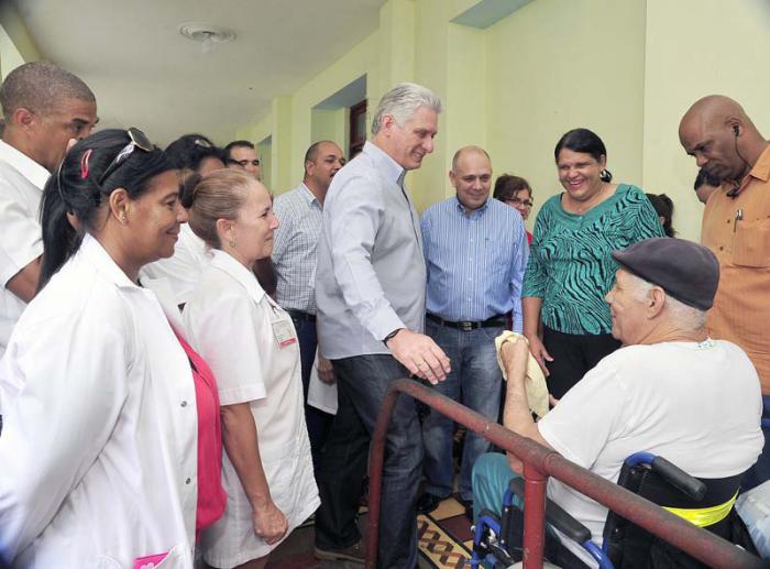 En el hogar de ancianos "28 de Enero", Díaz-Canel Bermúdez conversa con los abuelos que son atendidos allí (Foto: Estudios Revolución).