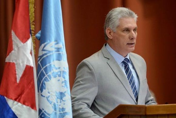 También precisa que pese al recrudecimiento del bloqueo económico y financiero de Estados Unidos contra Cuba, el país continúa trabajando en un plan de desarrollo de acuerdo con los objetivos de la Agenda 2030 de las Naciones Unidas, con la premisa de la inclusión social. Además, resalta la importancia de la democratización del conocimiento y de la disminución de la brecha en el acceso a las nuevas tecnologías. Ese día también se reúne con la excelentísima señora Alicia Bárcena Ibarra, Secretaria Ejecutiva de la CEPAL, después de que el día anterior sostuviera conversaciones oficiales con el excelentísimo señor Antonio Guterres, Secretario General de la Organización de Naciones Unidas (ONU).