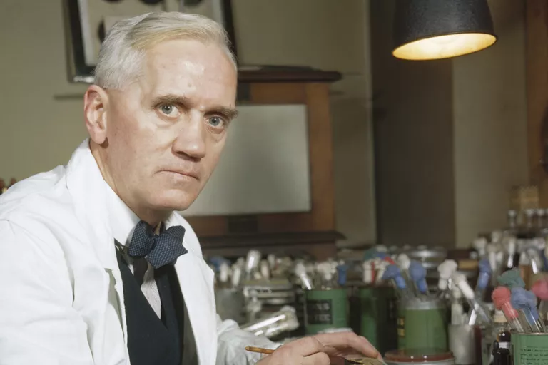 Alexander Fleming científico británico famoso por ser el primero en observar los efectos antibióticos de la penicilina. (thoughtco.com).